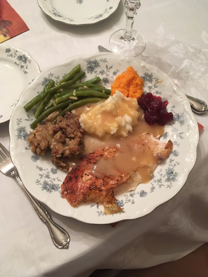 Every day at Grandma’s house is basically the same: breakfast (usually toast, eggs, bacon, breakfast rolls, juice, and coffee) then some kind of mid-morning snack then lunch (something like tomato soup, grilled cheese, and a veggie platter) then a mid-afternoon snack then cocktails and hors d’oeuvres (I’m very upset about missing out on cocktails this year because Grandma has primo liquor) then dinner (Thanksgiving involves turkey, stuffing, dressing, gravy, mashed potatoes, salad, some kind of warm casserole, cranberry sauce, rolls, and wine) then dessert and coffee (pumpkin, apple, and pecan pies for Thanksgiving) and finally post-dinner/pre-coma cocktails.